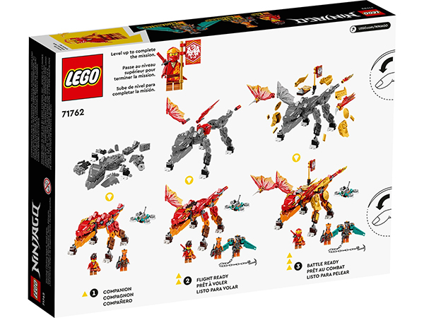 Das Bau- und Spielset „Kais Feuerdrache EVO“ (71762) bietet alles, was Kinder ab 6 Jahren für spannende Ninja-Abenteuer brauchen. Die Arme, das Maul, der Kopf, der Schwanz und die Beine des Spielzeugdrachen lassen sich bewegen. Zwei Upgrades sind möglich, um ihn noch größer, stärker und schneller zu machen.